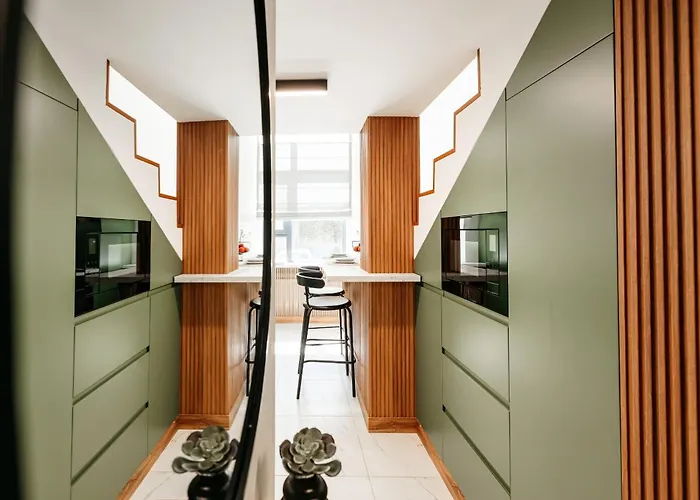 - ❓Is there a kitchen available at this apartment for guest use?Yes, this apartment is furnished with an equipped kitchen and offers a fridge, an oven, and glassware as well.
